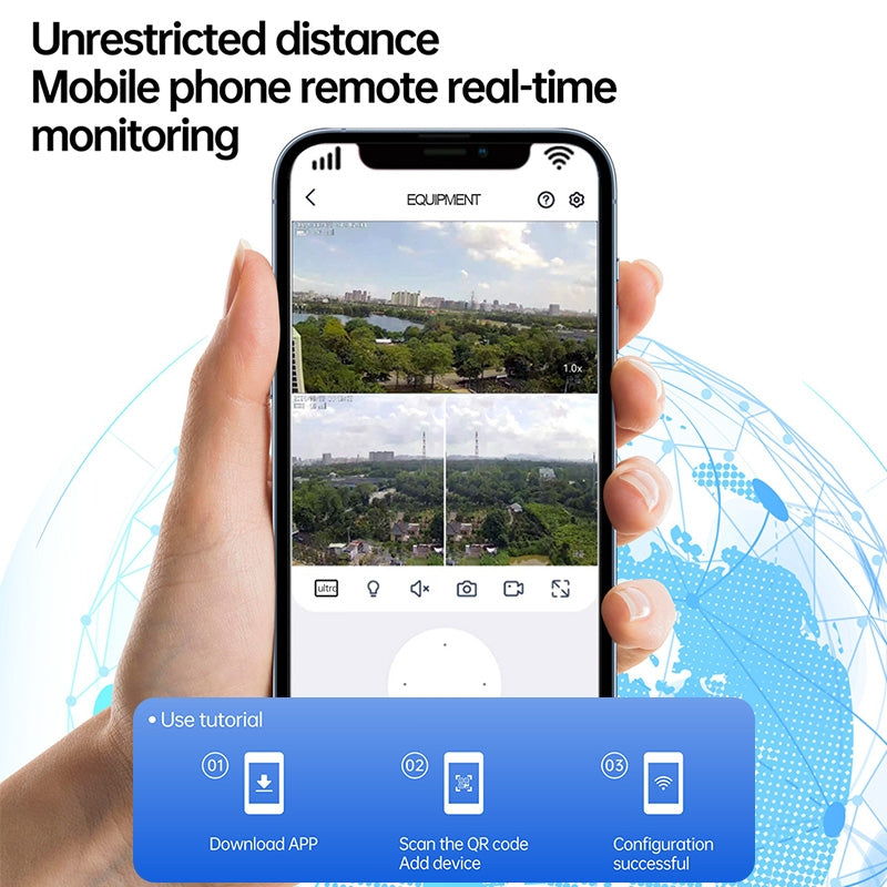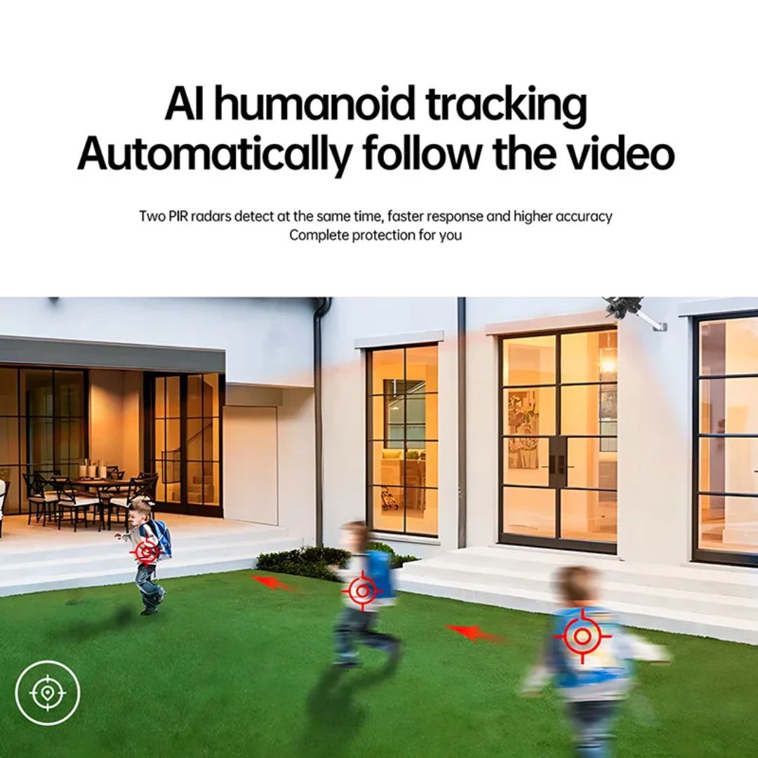 The motorized head rotates 360°, auto-tracking people, vehicles, or motion around your home. Whether it's your gate, backyard, parking area, or perimeter, you stay fully in control through your smartphone with real-time alerts, two-way audio, and crystal-clear day and night viewing.