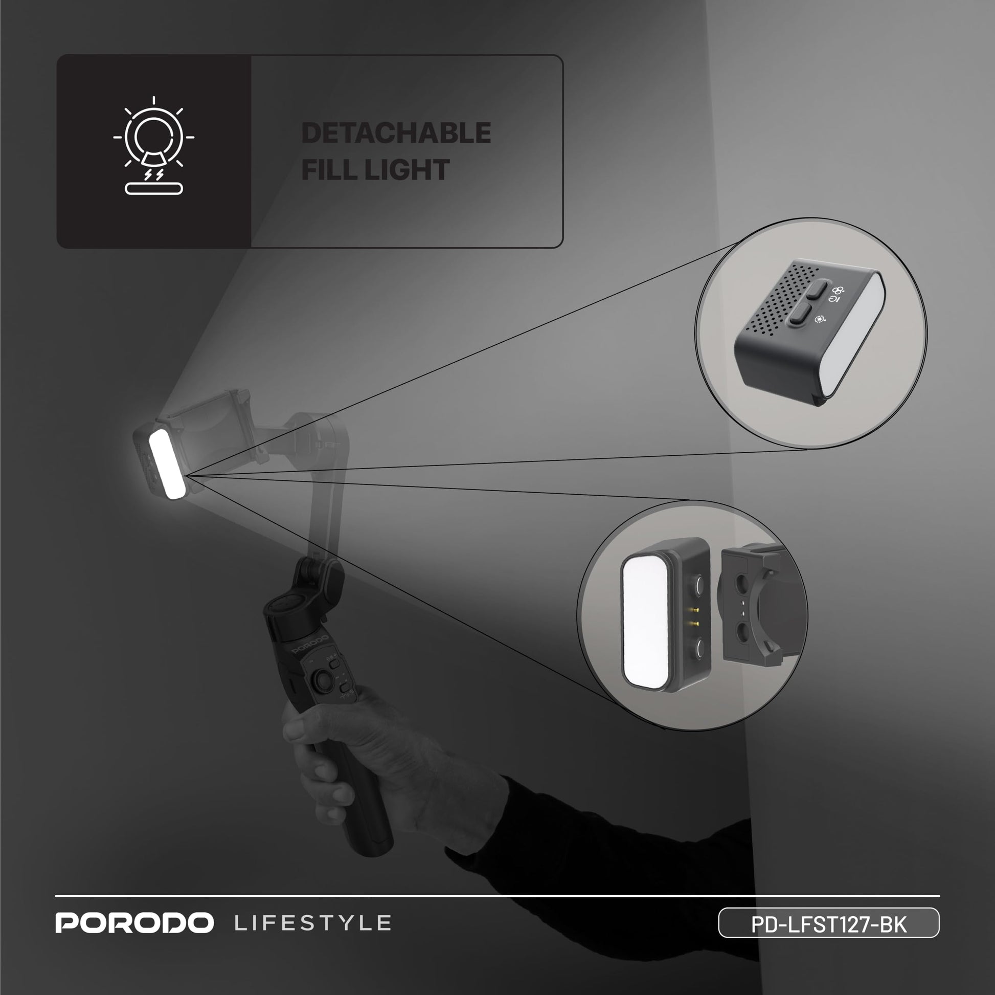 Porodo 3-Axis Gimbal Stabilizer with Magnetic Fill Light