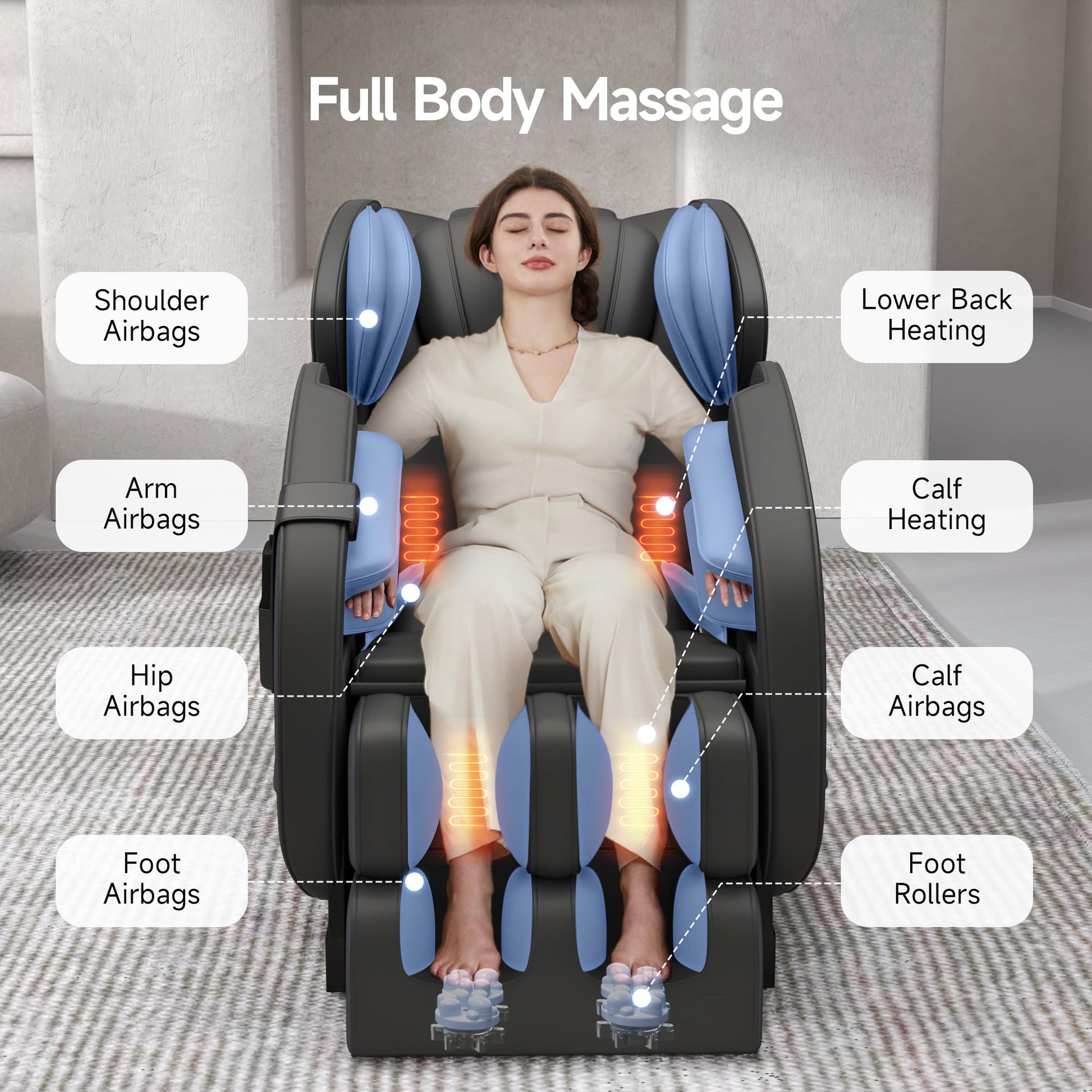 - Heating Function: Lumbar and calf regions